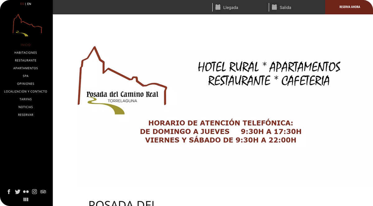 Como parte de un ejercicio realizado en clase, seleccioné la web de Posada del Camino Real para llevar a cabo una evaluación heurística basada en los 10 principios de usabilidad de Jakob Nielsen. El objetivo era identificar fallos de usabilidad y proponer un rediseño visual de la pantalla principal que mejorara la experiencia del usuario, manteniendo la identidad del establecimiento.